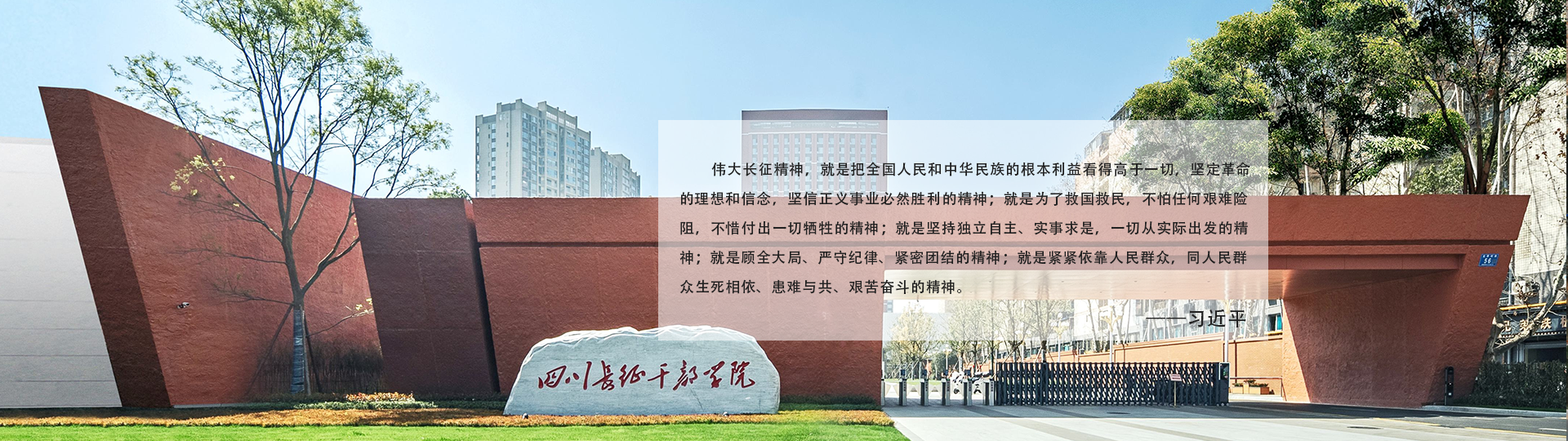 四川长征干部学院雅安夹金山分院位于“天府之肺、熊猫雅安”,是四川长征干部学院五所分院之一,与中共雅安市委党校实行一套班子统一管理,是对外联合开展领导干部党性教育、革命传统教育、爱国主义教育、红色文化教育、绿色发展教育、党风廉政教育以及大学生社会实践、中小学生研学的主渠道、主阵地。分院占地面积约90亩,建筑面积约2.6万平方米,建有VR教室、学术报告厅、学员讨论室、图书馆、宿舍楼、餐厅、室内运动场等办学设施,可同期培训学员500余人。